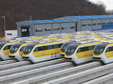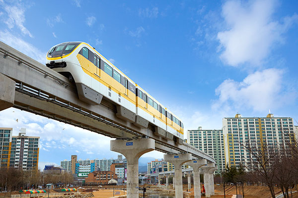 Daegu, the fourth largest South Korean city and home to a Hitachi built monorail which opened in the spring of 2015. The system consists of 30 stations, and just under 15 miles of double track. Construction took six years at a cost of $792 million.